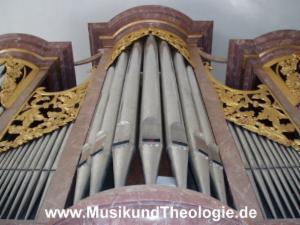 Dass ich es mit einer verhältnismäßig alten Orgel zu tun hatte, war mir klar. Immerhin hatte ich sie der vernehmlich kleineren und offensichtlich auch jüngeren Orgel der benachbarten katholischen Filialkirche vorgezogen. Ob auch die von mir als attraktiv empfundene marmorisierende Holzbemalung oder der Standort in der Kirche eines anderen Ritus weitere Entscheidungsgründe waren, kann ich nicht mehr seriös beantworten. Die besondere Provenienz als nahezu unverändertes Instrument der Silbermann-Schule beschäftigte mich gleichwohl später.